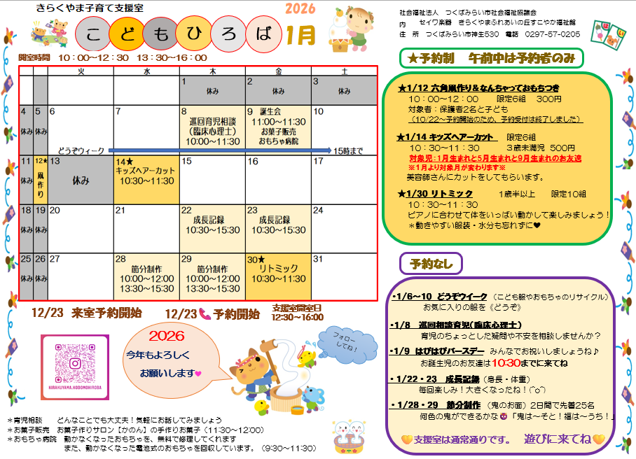 【きらくやまふれあいの丘すこやか福祉館 子育て支援室こどもひろば】