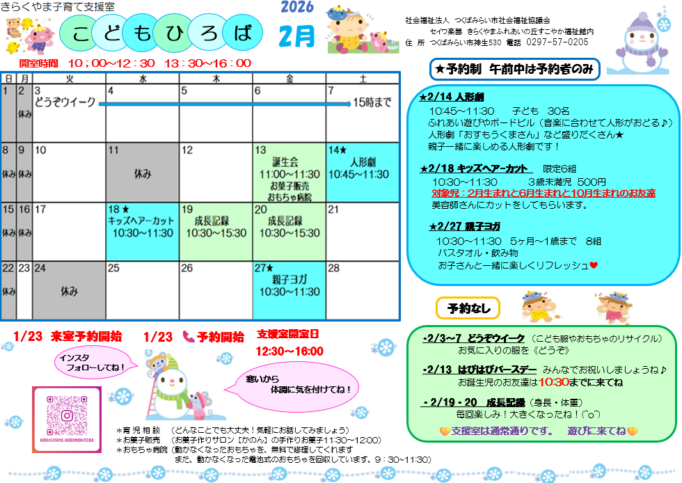 【きらくやまふれあいの丘すこやか福祉館 子育て支援室こどもひろば】