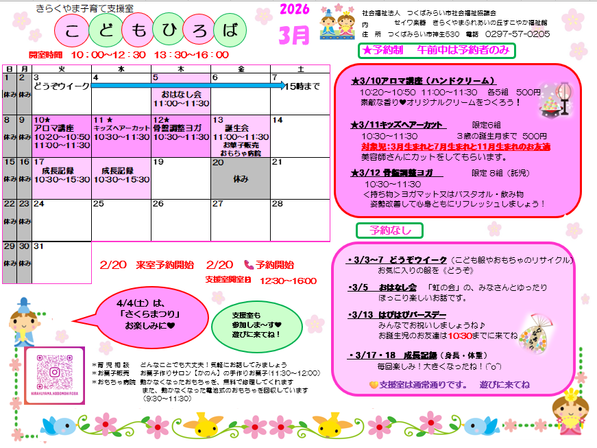【きらくやまふれあいの丘すこやか福祉館 子育て支援室こどもひろば】