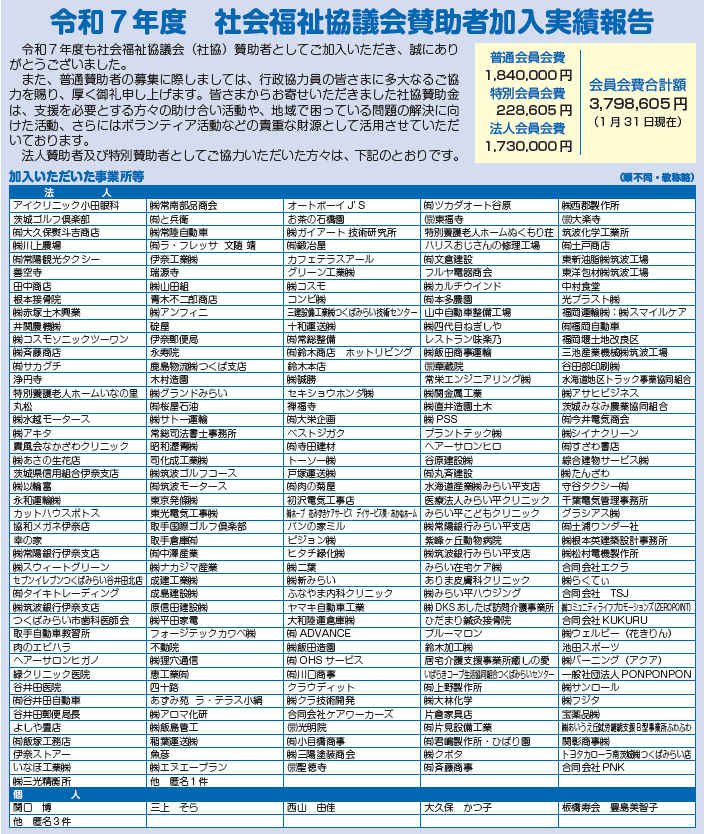 令和7年度 社会福祉協議会賛助者加入実績報告