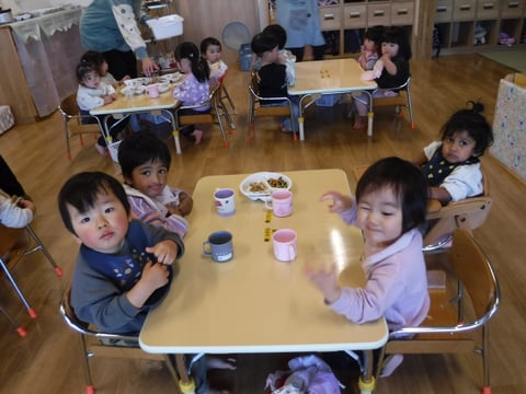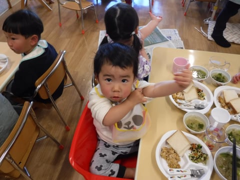 給食が並ぶまで、お友だちと上手に待ってくれています😉✨