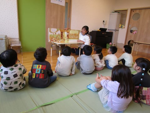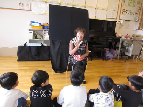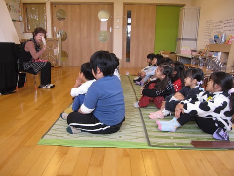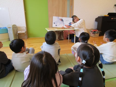 虹の会の人が来てくれて、ぱんだ組・ぞう組はお話を楽しみました‼