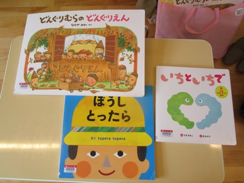 「はじまるよ」の手遊びの後に歌を元にした絵本を読みました