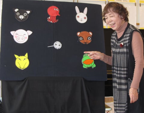 パネルシアターは二つ「どんぐりころころ」に「まんまるさん」