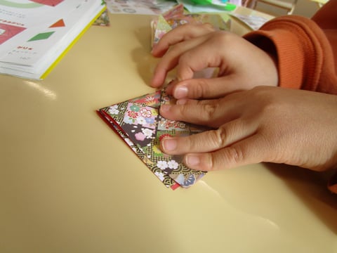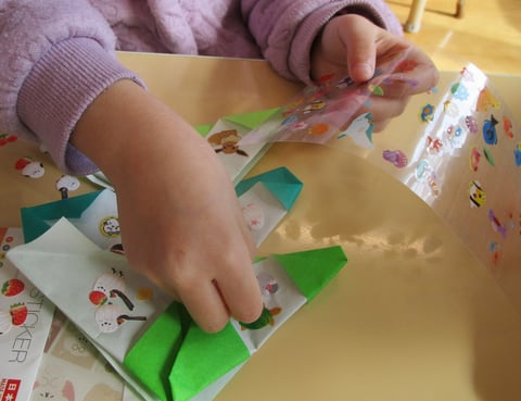ハートに折るのが得意でシールで飾り付けもしちゃいます😁