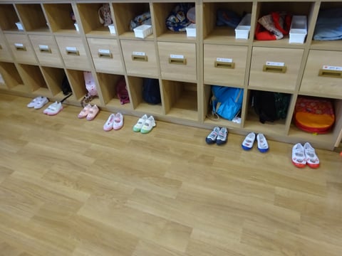 トイレに行くときは、自分のロッカーの所に揃えて脱ぎます☺