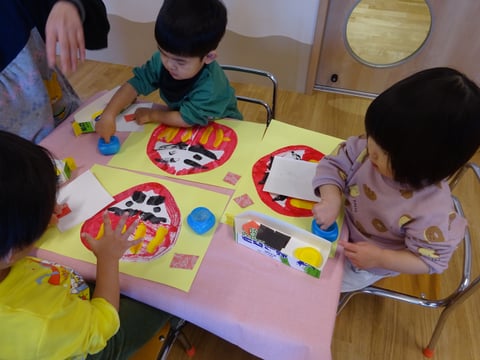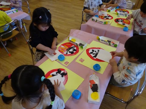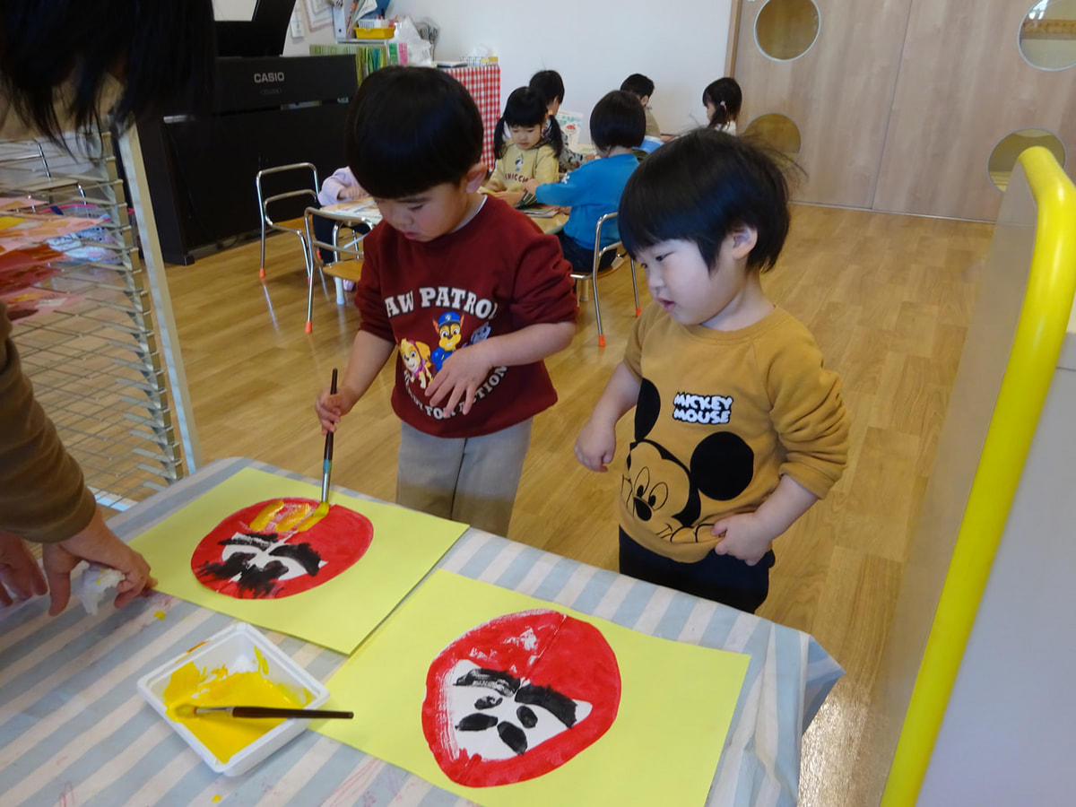 1月の製作でだるまさんを作りました😊