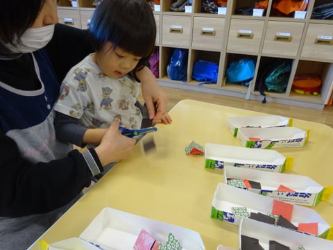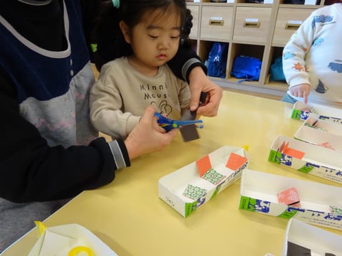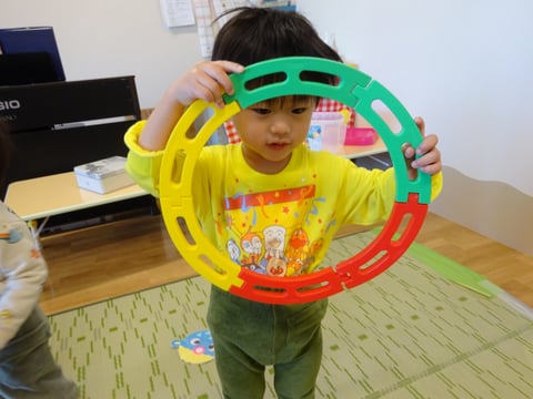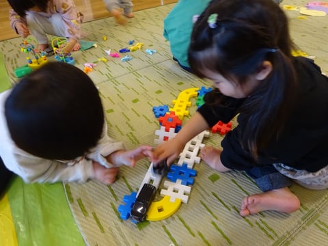 「道路を作ったよ✨」と、お友だちと走らせる姿や・・・
