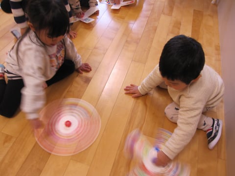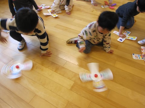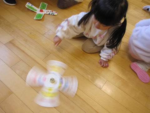 「どっちが長く回るかな~🎵」