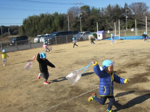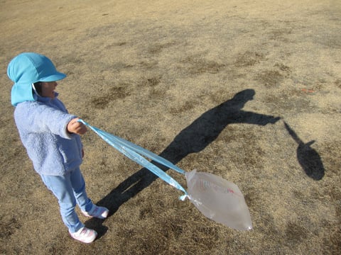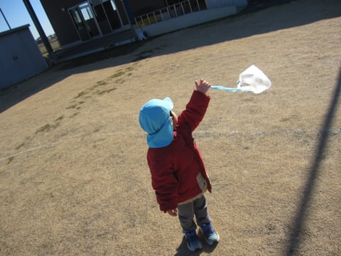 戸外では、製作した凧で遊びましたよ🎶