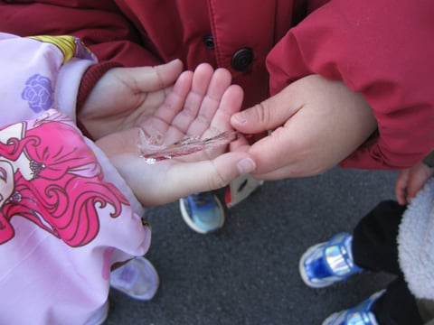 順番に触って氷の感触を楽しんでいました❄️