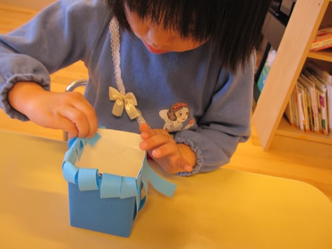 ハサミで切った紙テープをペタペタ✨