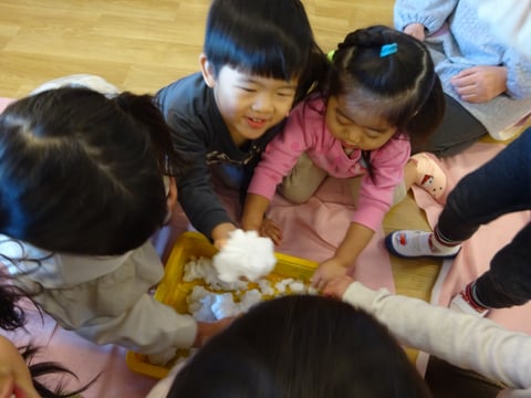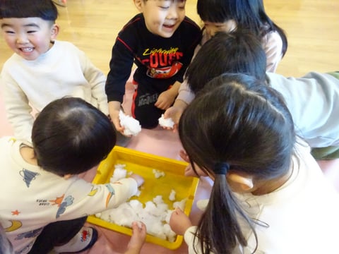ひよこ、りす組はお部屋に雪を持ってきました🪣![]()