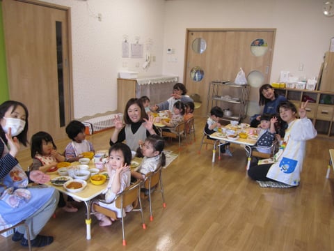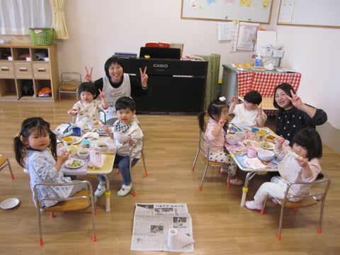 お昼ごはんはうさぎ組、ぱんだ組、ぞう組で