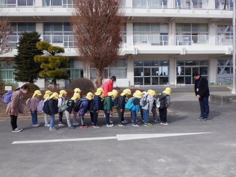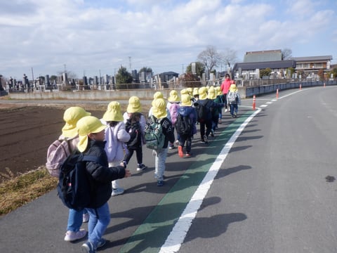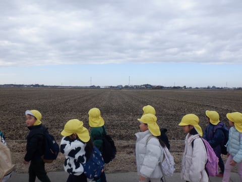 小学校の登校班で歩く練習もかねて、リュックに水筒を入れて歩きました🚶🏻