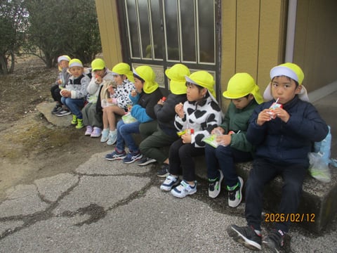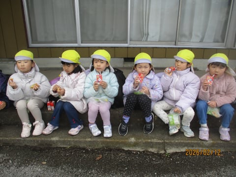 たくさん歩いてお腹がすいたのか、園に着いてからも、おやつの肉まんをぺろり😋