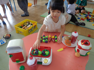 お部屋では、おままごとと一緒にお店屋さんを楽しんでいました😍