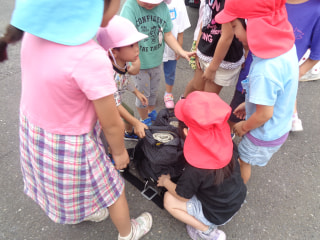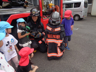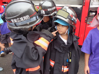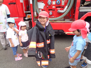 消防士さんは重いものをたくさん持ったり、身に付けたりしてすごいね✨