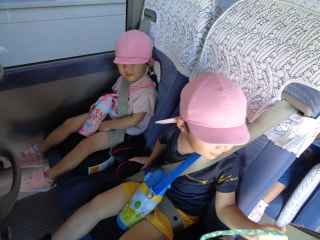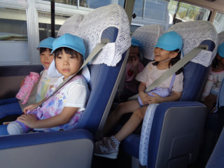 バスの中では、バスごっこを歌ったり、