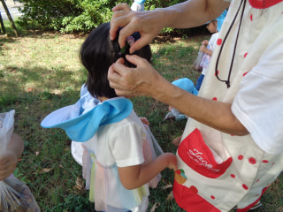 遊具で遊んだ後は、少し休憩をして