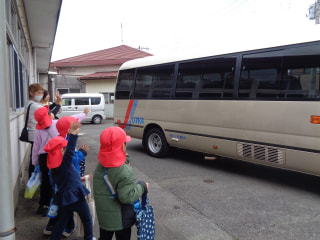 とふれあい第1保育園のお友だちに手を振る子どもたち😆