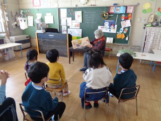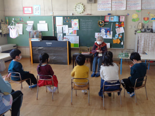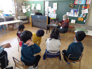 素話『ヤギとコウロギ』では真剣にお話を聞いていました👂