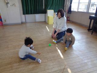 2人組になって転がしたり、キャッチボールをしたりしました⚾