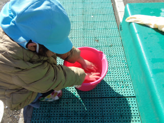 雪を丸めてコロコロ転がして・・・上手くできたかな!?