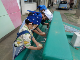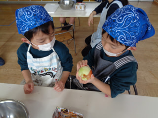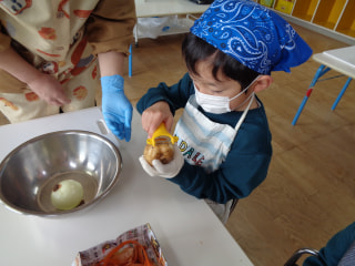 エプロンや三角巾を付けて、手をキレイに洗って準備完了✨