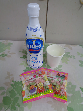 「ピンクと白と緑のひなあられが入ってるよ🩷🤍💚」