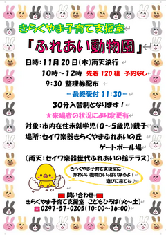 『きらくやま 子育て支援室 こどもひろば』11月のお知らせ